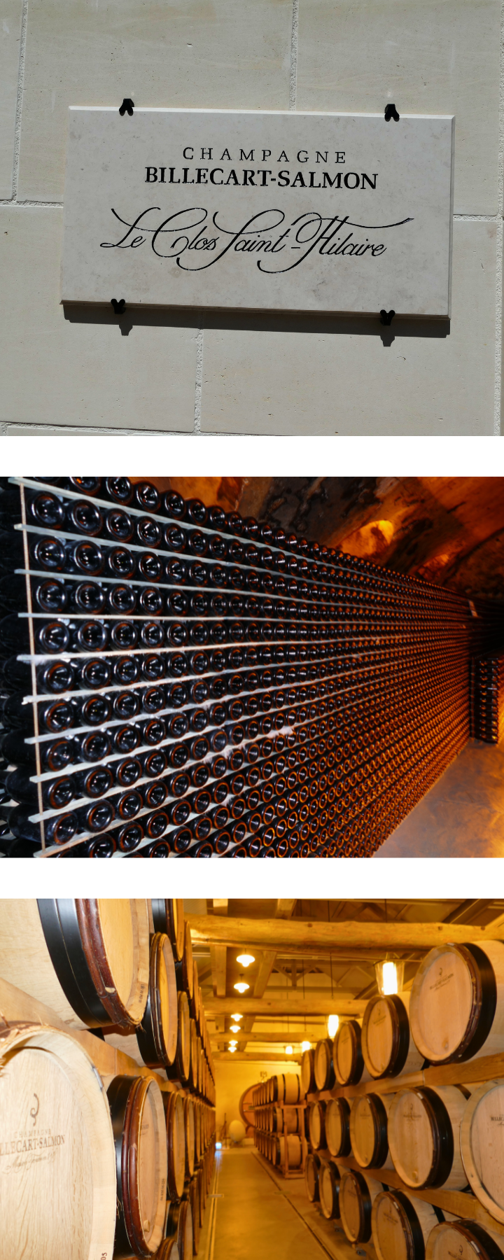 Am Donnerstag ging es für uns zur Weinkellerei von Billecart-Salmon in Mareuil-sur-Ay. Wir hatten eine ca. 2-stündige Führung mit anschließender Verkostung. Das Weingut produziert ca. 2 Millionen Flaschen im Jahr mit einer Gesamtrebfläche von 300 Hektar verteilt auf über 1000 Gebieten in der ganzen Champagne verstreut, wobei die Familie selbst um die 100 Hektar besitzt. Die anderen 100 Hektar werden von Billecart-Salmon bewirtschaftet und von den restlichen 100 Hektar werden die Trauben gekauft. Das gesamte Anwesen erstreckt sich über mehrere Gebäude, einen wunderschönen Garten und einer ummauerten Einzellage von Billecart-Salmon, genannt „Le Clos Saint-Hilaire“. Die Flaschen aus dieser Lage sind streng limitiert und nicht viele Menschen haben die Chance diesen Champagner zu probieren.