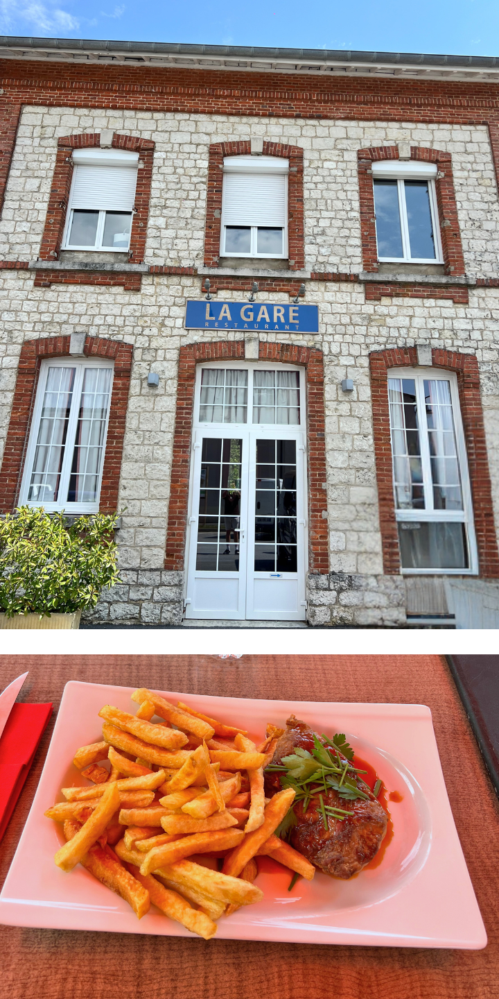 Auf dem Weg zu unserer nächsten Station machten wir einen kleinen Stopp in Le Mesnil-sur-Oger und kehrten zum Mittagessen in „La Gare“ ein. Nettes Lokal im alten Bahnhofsgebäude mit schöner Terrasse.