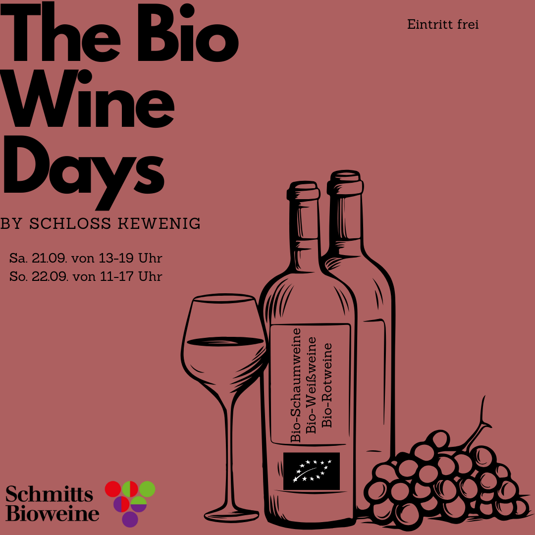 Lernen Sie uns kennen, probieren Sie über 30 Bioweine aus unserem Sortiment und bestellen Sie sich Ihre Favoriten für zu Hause. Am 21.09 und 22.09. sind wir zu Gast im Schloss Kewenig in Körperich und laden Sie dazu ein unsere Bioweine zu verkosten.