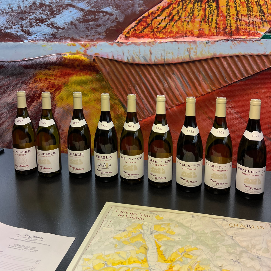 Das Weingut Domaine des Malandes bewirtschaftet insgesamt 29 Hektar Rebfläche: Petit Chablis, Chablis, Chablis 1er Cru (Vau de Vey, Côte de Léchet, Montmains, Fourchaume und Mont de Milieu)